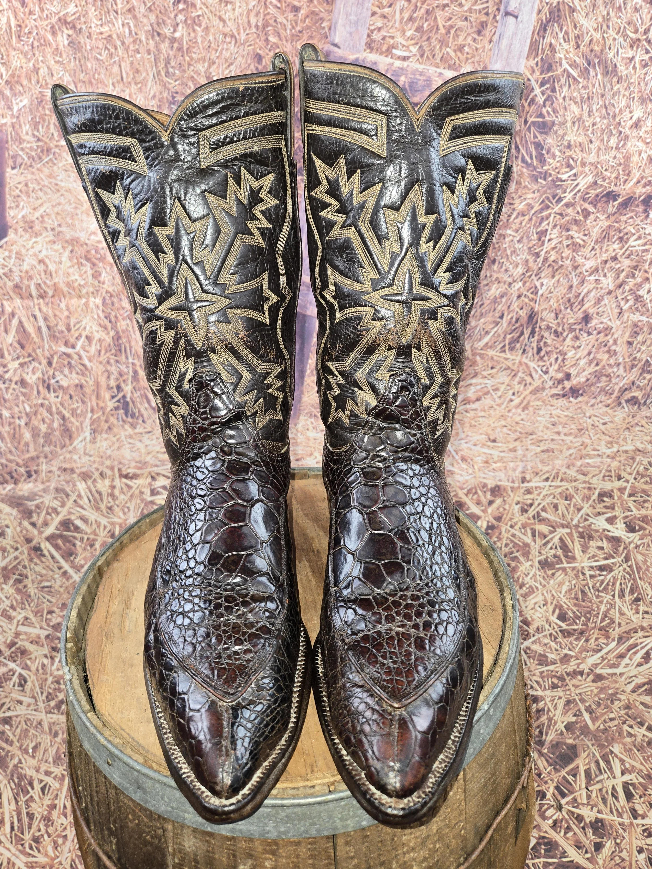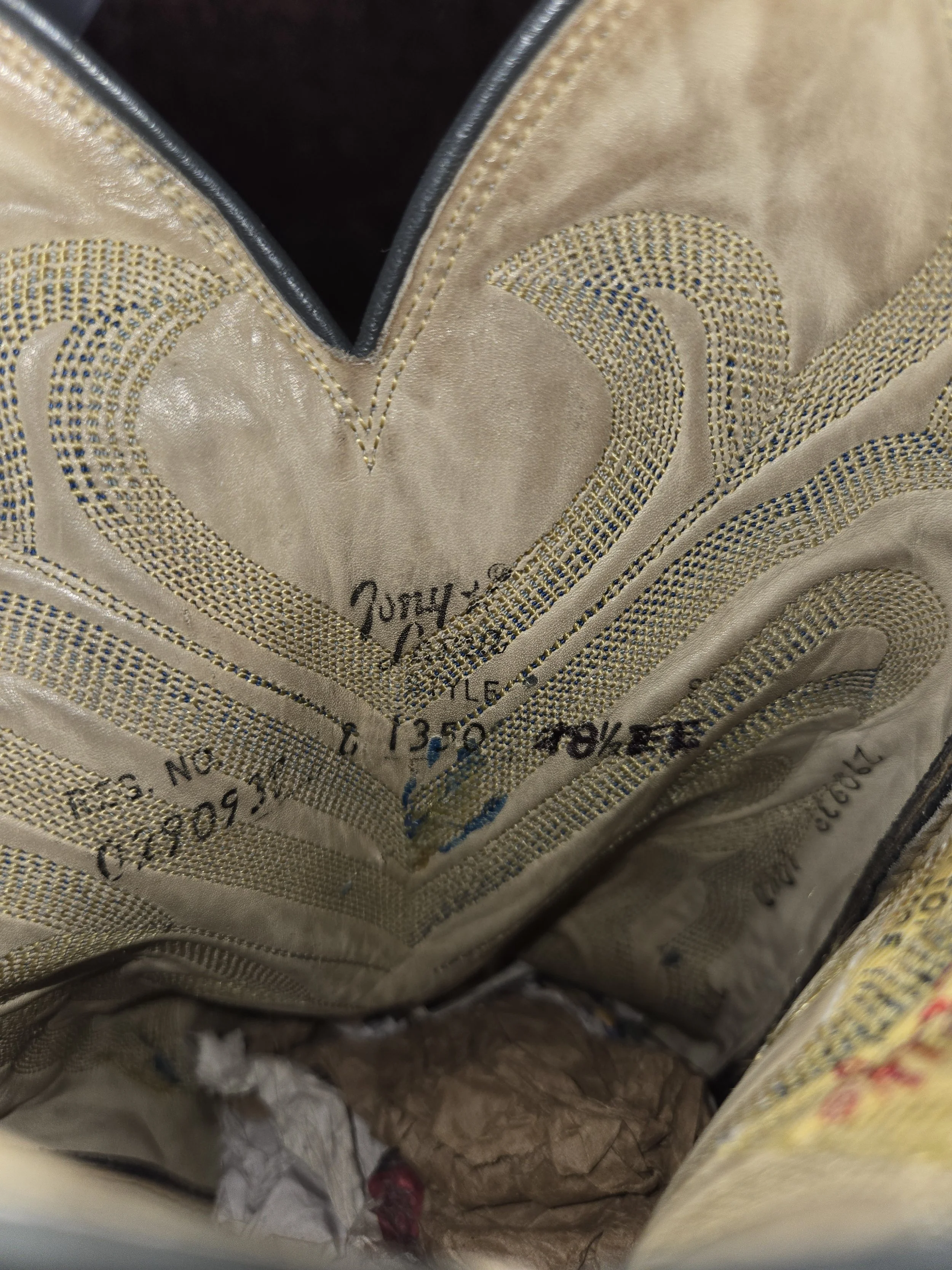 Categories: All Women's Boots 7 / 7.5 Women's Boots 8 / 8.5 Women's Boots 9 / 9.5 Women's Boots Men's Boots 7 / 7.5 Men's Boots 8 / 8.5 Men's Boots 9 / 9.5 Men's Boots 10 / 10.5 Men's Boots 11 / 11.5 Men's Boots 12 / 12.5 Men's Boots 13 / 13.5 Men's Boots All | Women's Boots | Men's Boots | Men's 1970s Handcrafted ML Leddys American Alligator Belly 10.5 D Brown $800.00 Men's 1980s Handcrafted Anderson Bean 9 D Hornback Lizard Brown $500.00 Men's 1980s Handcrafted TO Stanley Anteater 10 D Preban Triad Mule Ear Pulls Sale Price: $1,500.00 Original Price: $2,000.00 Sale Men's 1980s Handcrafted TO Stanley Anteater 9.5 D Preban Sale Price: $1,000.00 Original Price: $1,500.00 Sale Men's 1970s Handcrafted Tony Lama Hornback Lizard 8.5 EE Gray Sale Price: $400.00 Original Price: $500.00 Sale Men's 1950s Handcrafted Tony Lama Sea Turtle 10 D Brown Boots Preban $600.00 Sold Out Men's 2000s ML Leddy Exotic Western Handcrafted 12 /12.5 D Burnished Cherry Genuine Elephant Hide (Copy) Sale Price: $750.00 Original Price: $1,500.00 Sale Men's 1970s Handcrafted Custom 9 D Sea Turtle Boots Preban Brown LARGE SCALE Sale Price: $800.00 Original Price: $1,200.00 Sold Out Men's 1960s Handcrafted Tony Lama 9 D Whale Honey Preban Sale Price: $900.00 Original Price: $1,200.00 Sale Men's 1980s Hondo Exotic Western Handcrafted 9.5 D Genuine Elephant Hide Sale Price: $400.00 Original Price: $800.00 Sale Men's 2001 "Lucchese 2000" Exotic Western Handcrafted 12 D Black Cherry Genuine Elephant Hide Sale Price: $350.00 Original Price: $500.00 Sale Men's 1970s Lucchese San Antonio Exotic Western Handcrafted 10.5 E Two Tone Genuine Elephant Hide Sale Price: $500.00 Original Price: $650.00 Sale Men's 1970s Tony Lama Exotic Western Handcrafted 10.5 EEE Brown Genuine Elephant Ear Hide Sale Price: $300.00 Original Price: $1,500.00 Sale Men's 2012 Custom Handcrafted Exotic Loveless Hippo 11 D / 11.5 D Black (Poss 12 w/o insole) Sale Price: $650.00 Original Price: $1,200.00 Sold Out Men's 1990s Double H Exotic Western Handcrafted 12 D Tan/White Genuine Elephant Hide Sale Price: $500.00 Original Price: $1,500.00 Sale Men's late 1980s Handcrafted Exotic Lucchese Cowboy Boots 8.5 D Two-Tone DEEPLY figured, Rare Sale Price: $600.00 Original Price: $1,000.00 Sale Men's 1980s Handcrafted Nocona Elephant 9 EE Midnight Black Tall Top Bright Red Sale Price: $450.00 Original Price: $900.00 Sale Men's Handcrafted Black Jack 9 EE Chocolate Two-tone Brown Terlingua Inlay Sale Price: $500.00 Original Price: $1,200.00 Sold Out Men's Handcrafted Black Jack 9 EE Midnight Black Elephant Two-tone Corded Inlay Star Uppers Sale Price: $500.00 Original Price: $1,200.00 Sold Out Men's 1980s Handcrafted Custom Jackson Boot Company Cowboy line 8 E Grey with AMAZING Full Elephant All the way up Sale Price: $800.00 Original Price: $1,200.00 Sale Men's 2011s Handcrafted Elephant Custom Lucchese 8.5 EE Cowboy line from Lucchese INCREDIBLY DEEPLY figured, rare Sale Price: $500.00 Original Price: $1,200.00 Sale Men's 1990s Handcrafted Elephant Boots from Custom Artisans 10.5 EEE / 11 EE Black with Matching Belt Sale Price: $400.00 Original Price: $600.00 Sale Women's 1970s Handcrafted Dan Post Full Rhino 7.5 A All the Way Up Preban Sale Price: $850.00 Original Price: $1,500.00 Sale Women's 1970s Handcrafted Justin Cap Toe Sea Turtle 8.5 B NOS Preban Sale Price: $300.00 Original Price: $750.00 Sale Men's 1980s Handcrafted Tony Lama Anteater 9 EE Brown Preban Sale Price: $750.00 Original Price: $1,500.00 Sale Men's 1980s Handcrafted Justin Anteater 9.5 D Blonde Preban Sale Price: $850.00 Original Price: $1,500.00 Sold Out Men's 1990s Rios Of Mercedes Handcrafted 10.5 D Full Hippo Sale Price: $650.00 Original Price: $900.00 Sold Out Men's 1990s Lucchese El Paso Hippo Handcrafted 12 D Full Sale Price: $999.00 Original Price: $2,500.00 Sale Men's 1990s Lucchese El Paso Handcrafted 12 D Hippo Sale Price: $650.00 Original Price: $1,500.00 Sale Men's 1960s Handcrafted Nocona Preban Seal 11 D Brown Sale Price: $2,100.00 Original Price: $3,000.00 Sold Out Men's 1960s Handcrafted Laramie Seal 10.5 D White Preban Sale Price: $500.00 Original Price: $700.00 Sale Men's 1970s Handcrafted Dan Post Sea Turtle 9.5 D Brown Repaired Boots Preban Sale Price: $400.00 Original Price: $600.00 Sale Men's 1980s Handcrafted Justin 9 D Hornback Lizard Brown Sale Price: $600.00 Original Price: $1,000.00 Sale Men's 1980s Handcrafted Justin Hornback Lizard 10.5 D Brown Sale Price: $600.00 Original Price: $800.00 Sale Men's 1960s Handcrafted Loveless Custom 13.5 D/E Medium Brown Preban Sale Price: $3,000.00 Original Price: $3,500.00 Sold Out Men's 1960s Handcrafted Boulet Walrus 8.5 E Black Preban Sale Price: $1,150.00 Original Price: $1,500.00 Sold Out Men's 1960/70s Handcrafted Custom 10 D Light Brown Preban Sale Price: $900.00 Original Price: $1,200.00 Sold Out Women's 1960/70s Handcrafted Nocona Whale 9 A Chocolate Preban Sale Price: $700.00 Original Price: $900.00 Sale Men's 1950s Handcrafted Cowtown Whale 8.5 D or 8 E Brown Preban Sale Price: $900.00 Original Price: $1,200.00 Sale Men's 1960/70s Handcrafted Tall Top Nocona Whale 7.5 D Blonde Preban Sale Price: $450.00 Original Price: $950.00 Sold Out Men's 1960/70s Handcrafted Tony Lama 9 D Whale Chocolate Preban Sale Price: $1,000.00 Original Price: $1,200.00 Sold Out Men's 1950s Handcrafted Cowtown Whale 12 B Light Brown Preban Sale Price: $2,500.00 Original Price: $3,000.00 Sold Out Men's 1960s Handcrafted Cowtown Whale 8.5 D Light Brown Preban Sale Price: $1,000.00 Original Price: $1,500.00 Sold Out Men's 1960s Handcrafted Cowtown Whale 8 D Light Brown Preban Sale Price: $1,000.00 Original Price: $1,200.00 Sold Out Men's 1950s Handcrafted Cowtown 12.5/13 D Light Brown Preban Sale Price: $3,000.00 Original Price: $3,750.00 Sold Out